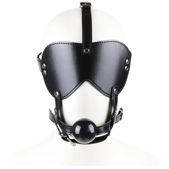 Чёрная маска-шоры с кляпом-шариком на регулируемых ремешках. Изготовлена из качественной эко-кожи с металлической фурнитурой. Великолепный БДСМ-атрибут для эротических фетиш-игр.